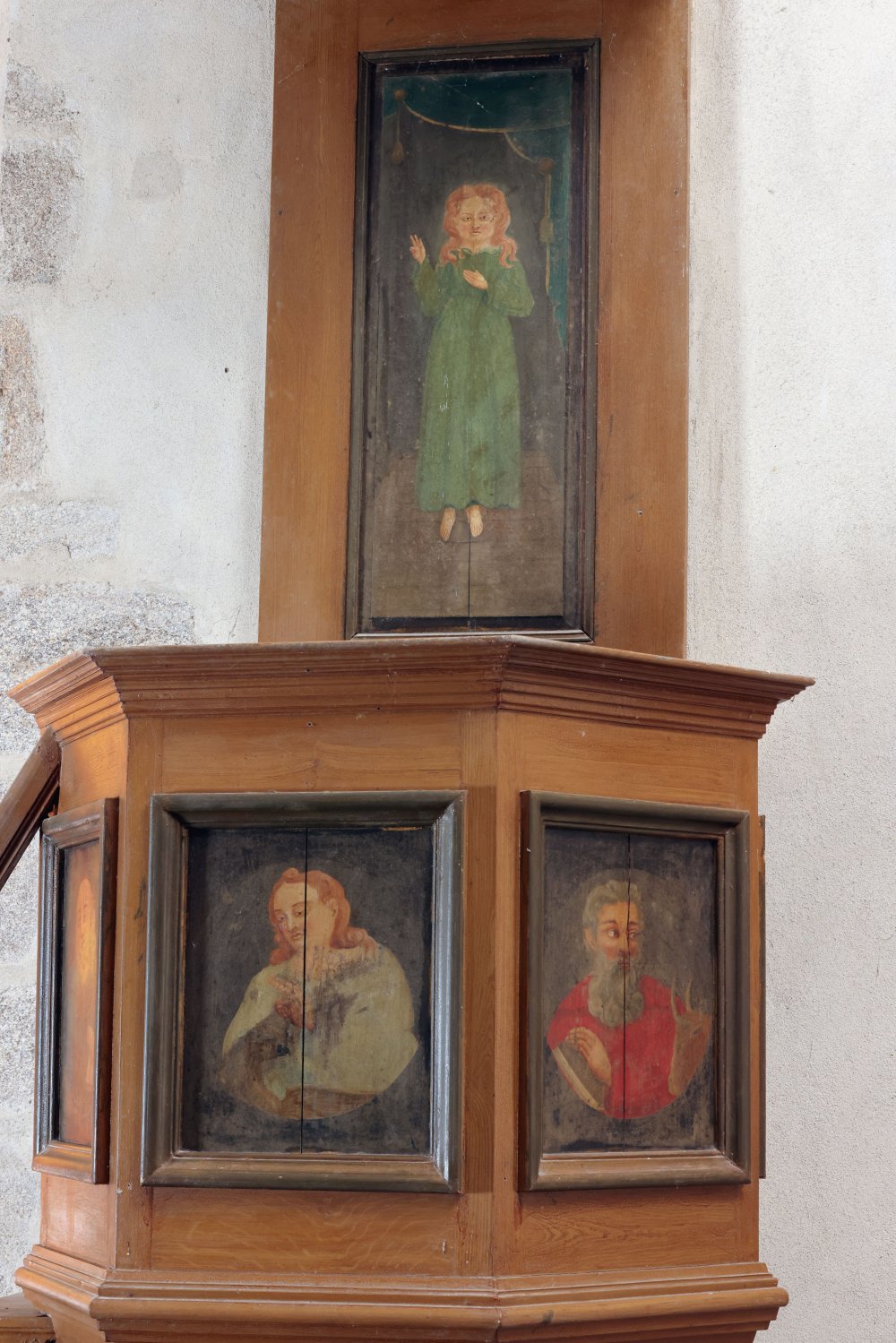 Selon une tradition locale, la table de communion et la chaire auraient été données par Angélique de Scorailles, duchesse de Fontanges, maîtresse de Louis XIV, qui mourut à vingt ans, le 28 juin 1681. En 1793, les paroissiens réussirent à sauver des flammes ces précieuses boiseries qui furent restaurées à plusieurs reprises. Le retable du maître-autel, d’allure moins monumentale que la chaire, provient de la chapelle du Rosaire, installé dans le chœur en 1826. Alors en bois naturel, il fut peint et doré et le tableau central, consacré à la Vierge, remplacé par. la Crucifixion (par Vanelli). Quatre médaillons représentant les Pères de l’Eglise entourent la toile centrale. Une armoire du XVIIe siècle, conservée dans la sacristie, a retrouvé tout son éclat grâce à une restauration menée en 1988.