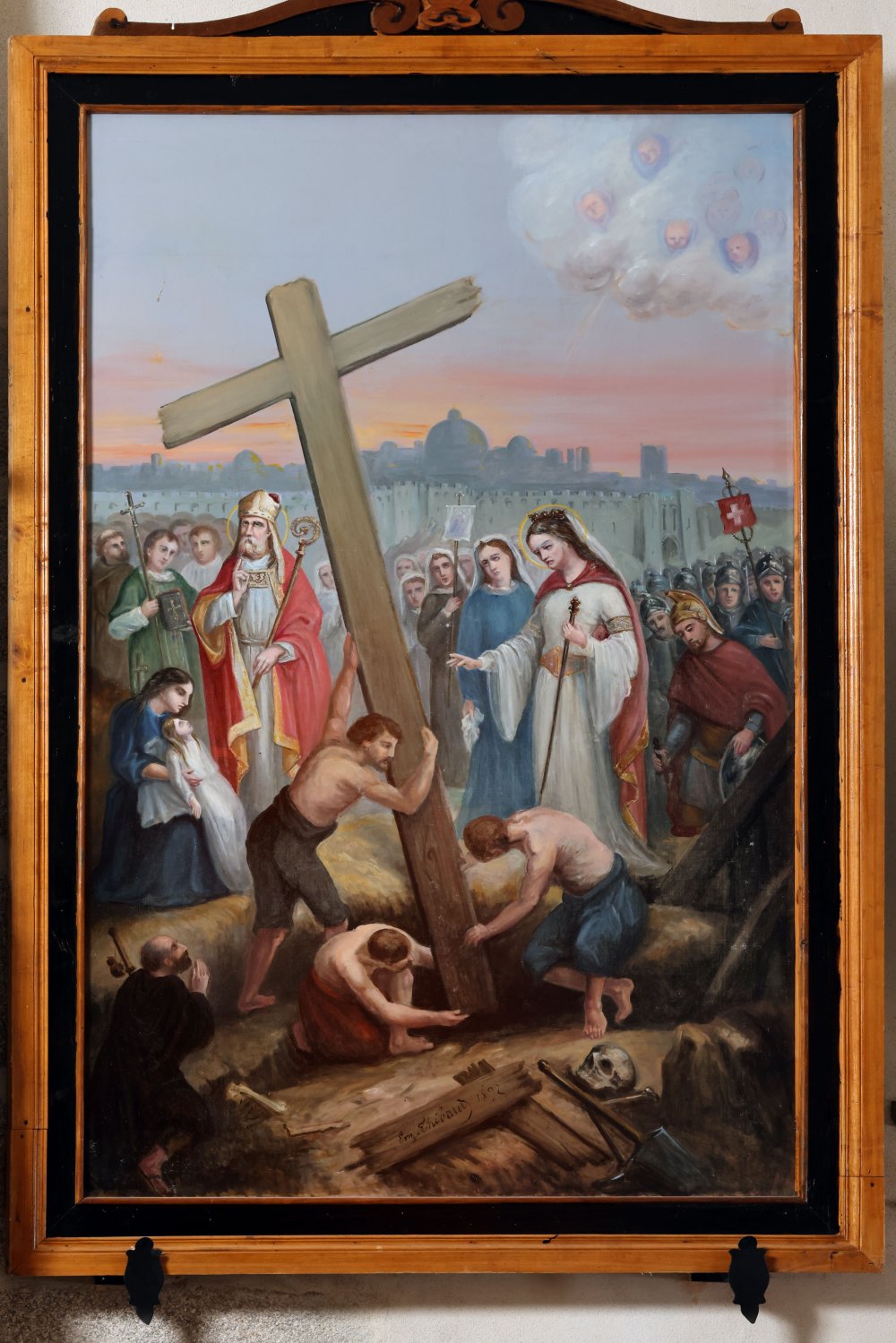 Un vitrail de Charles Borie représente la Prière à Marie, accompagnée de la devise Travail, Famille, Patrie. Parmi les noms des donateurs figurent ceux des réfugiés en zone libre. LAMAZIÈRE-HAUTEExaltation de la Sainte-CroixL’église romane est flanquée d’une seule chapelle. Le clocher pignon, refait en 1784, abrite une cloche du XVIIe siècle. La chaire est ornée de peintures naïves qui contrastent avec les images sulpiciennes, dont l'Exaltation de la Sainte Croix par sainte Hélène, rappelant la dédicace de l'église.