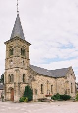L’église romane, rustique, construite en gros blocs cristallins, se compose d’une abside à trois pans à laquelle fait suite une nef sans bas-côtés. Les voûtes d’origine ont disparu, mais les colonnes engagées à chapiteaux sans décor sont encore en place. Un clocher à toit pyramidal abrite l’entrée que défendait une bretèche. L’église a été agrandie, au XVe siècle, de chapelles latérales, toutes au midi. La plus ornée appartint au château. Sur l’autel de la deuxième chapelle se trouve une Vierge de Pitié en pierre peinte de la fin du moyen âge, malheureusement mutilée. Une inscription rappelle qu’elle a été offerte par le prêtre S. du Breuil. Une curieuse ouverture en forme de croix de Malte éclaire la chapelle des fonts qui abrite une belle cuve baptismale romane en grès, sculptée de lys et d’acanthe. L’église possède aussi un Christ en bronze et une croix processionnelle en cuivre doré du XIIIe siècle. LAPLEAUSaint-EtiennneL’ancienne église de Lapleau, dont le chœur datait du XVe siècle, a été remplacée par un édifice néo-roman, consacré en 1890.